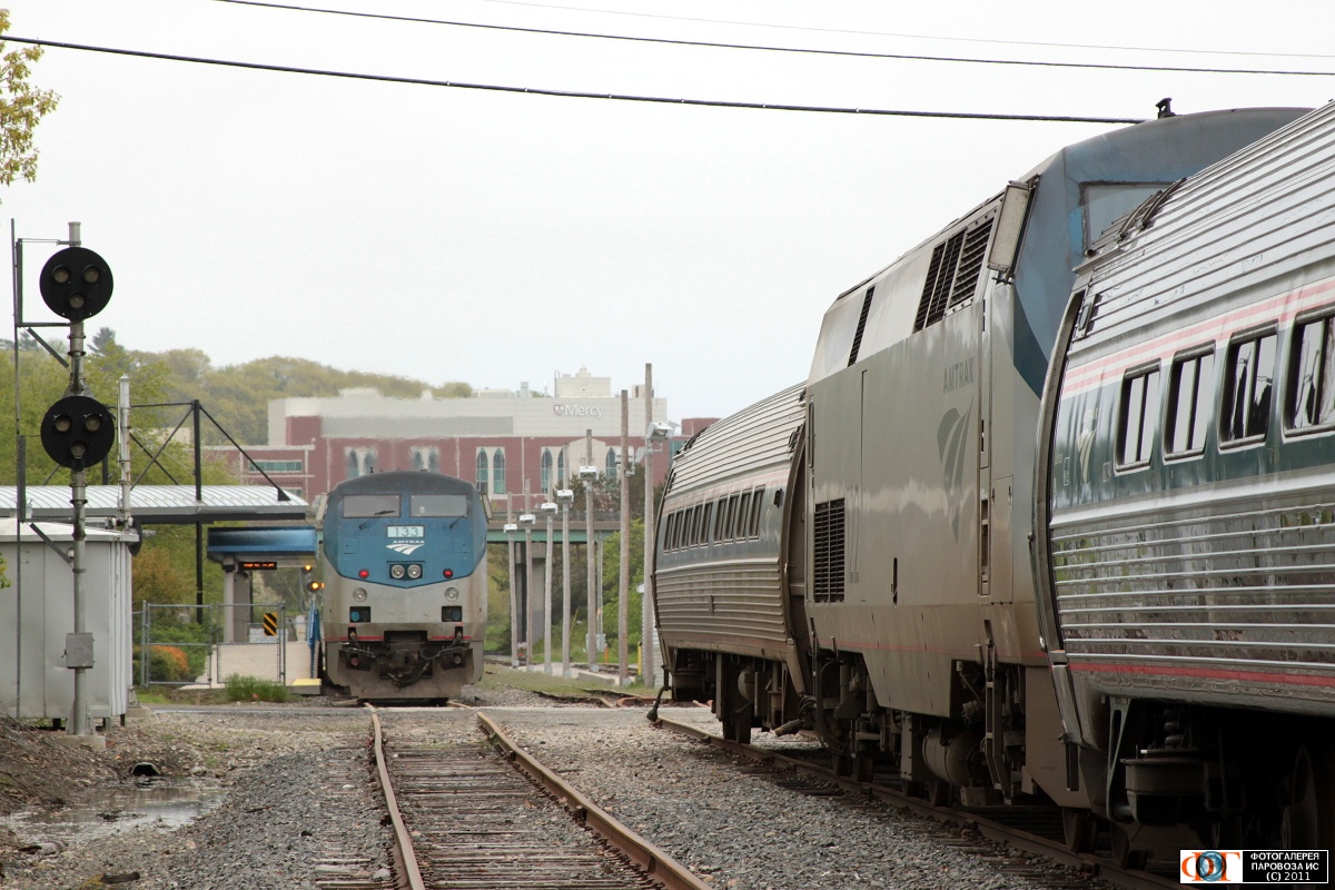 | Тепловозы P42DC "Дженезис" №№ 122 (справа) и 133 (слева) компании "Амтрак", ст. Портленд, США/Мэн Автор: Зиновьев Д. | Фото сделано 22.V.2011, опубликовано 24.V.2011.