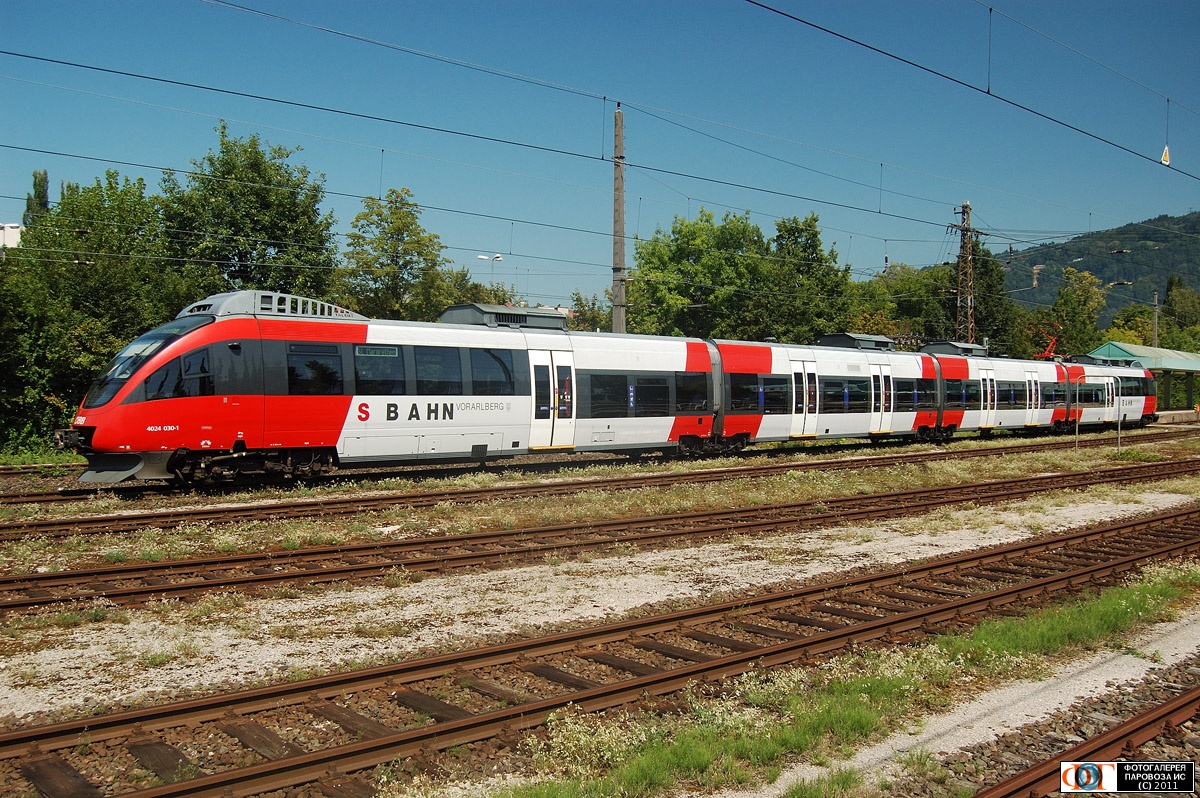 | Электропоезд 4024-030 отправляется со ст. Брегенц (Bregenz), Форарльберг, Австрия Автор: OldNick | Фото сделано 20.VIII.2011, опубликовано 3.IX.2011.