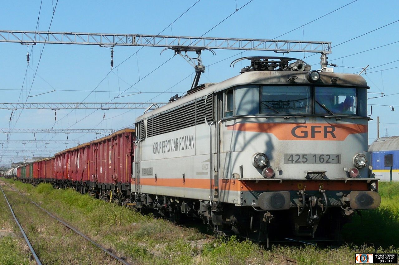| Электровоз 425.162-1 перевозчика Grup Feroviar Roman с грузовым поездом на ст. Тимишоара-Норд, Румыния Автор: Михаил Кульгейко | Фото сделано 20.VIII.2011, опубликовано 14.IX.2011.