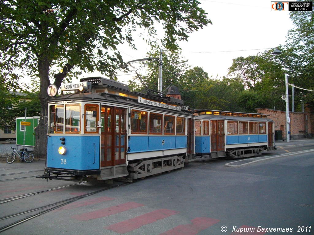 | Трамвайный вагон A1 №76 с прицепным вагоном B19 №846, Стокгольм, Швеция Автор: Кирилл Бахметьев | Фото сделано 2.VIII.2011, опубликовано 27.I.2012.