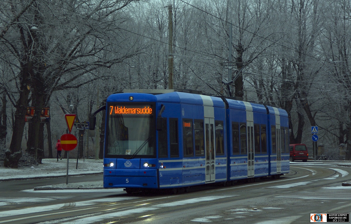 | Трамвай Bombardier Flexity Classic №5, ул. Юргордсваген, Стокгольм, Швеция Автор: tallart | Фото сделано 21.I.2012, опубликовано 7.II.2012.