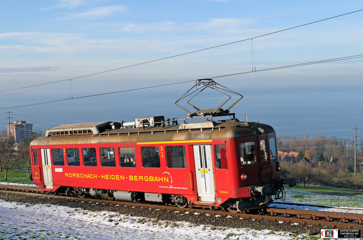 | Электромотриса ABeh 2/4 24 зубчатой дороги Роршах - Гейден (Rorschach – Heiden), г. Роршах, Швейцария Автор: Martin Haefliger | Фото сделано 3.VII.2010, опубликовано 11.II.2012.
