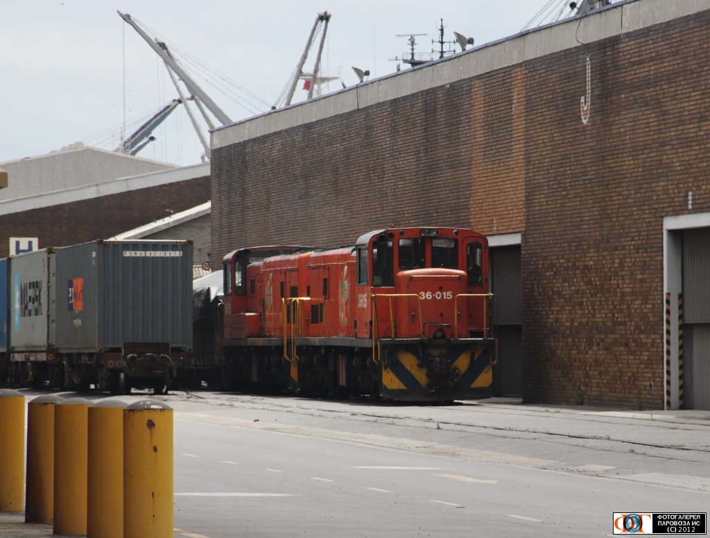 | Тепловозы SAR Class 36-000 №№ 36-012 и 36-015 с грузовым составом в порту Кейптауна, Южная Африка Автор: Мишбан | Фото сделано 9.XII.2011, опубликовано 23.III.2012.