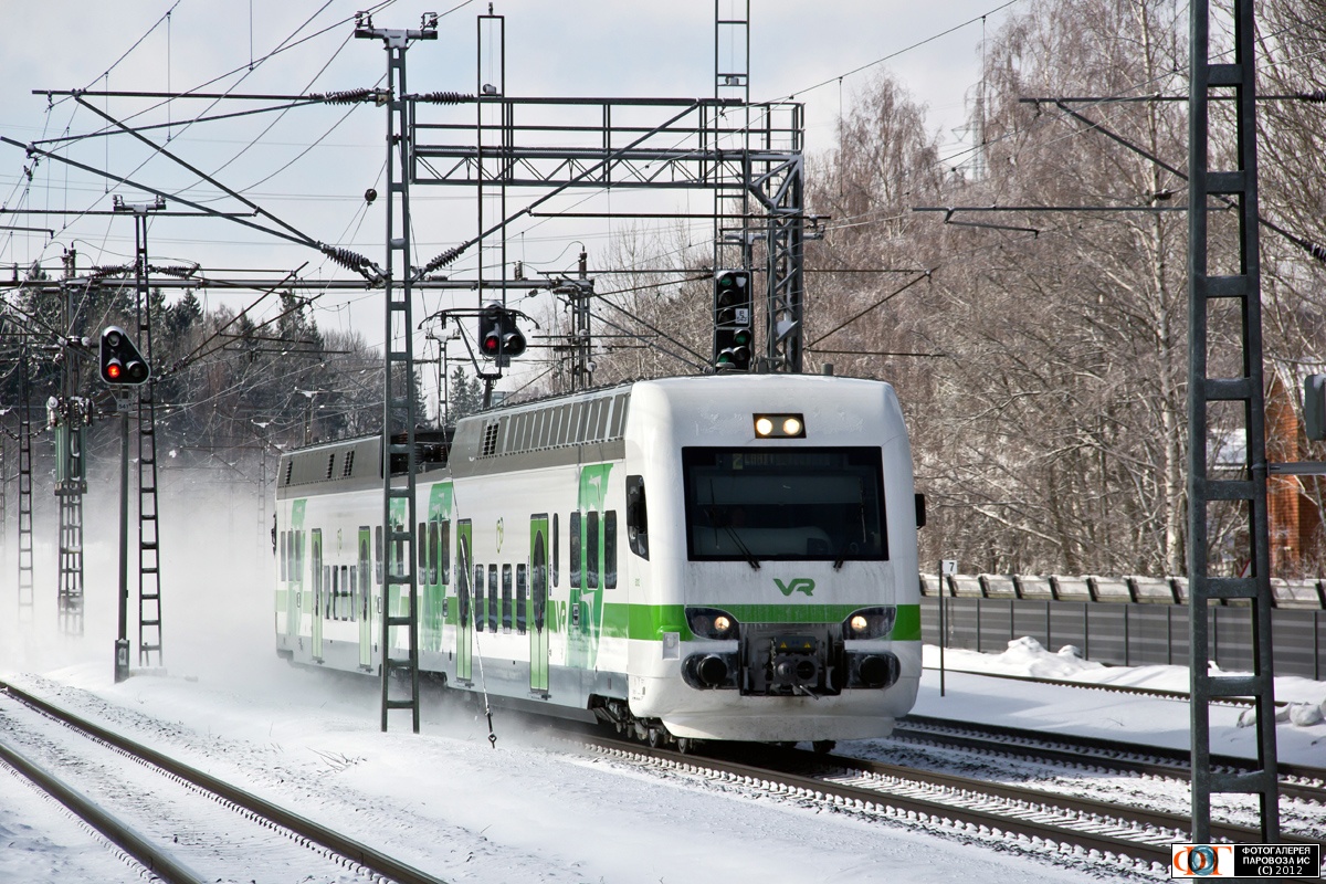 | Электропоезд Sm4-6312/6412 около о.п. Оулюнкюля, участок Пасила - Тиккурила, Финляндия Автор: Григорий Егоров † | Фото сделано 25.III.2012, опубликовано 11.IV.2012.