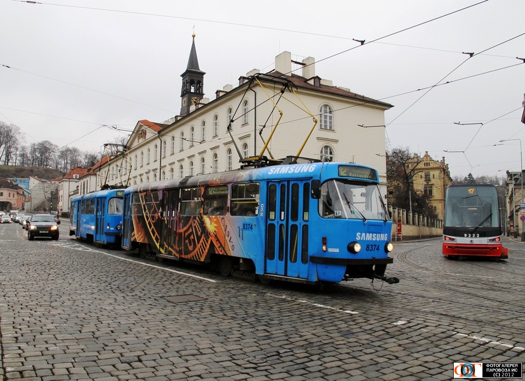 | Трамваи "Татра" Т3R.PLF №8374 и №8375, маршрут №12, ул. Кларов, Прага, Чехия Автор: ВИКТОР | Фото сделано 14.III.2012, опубликовано 12.IV.2012.