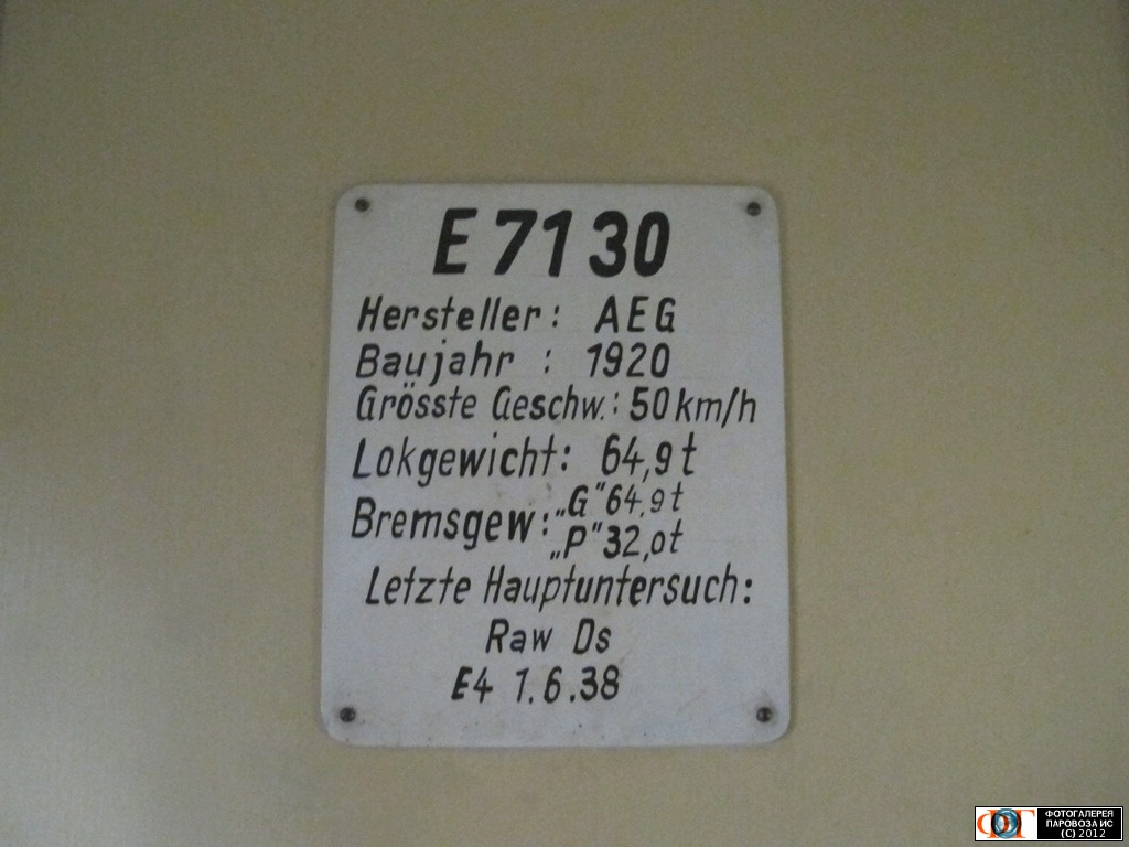 | Технические параметры электровоза Е71-30, Дрезденский музей транспорта, Германия/Саксония Автор: ВИКТОР | Фото сделано 15.III.2012, опубликовано 28.IV.2012.