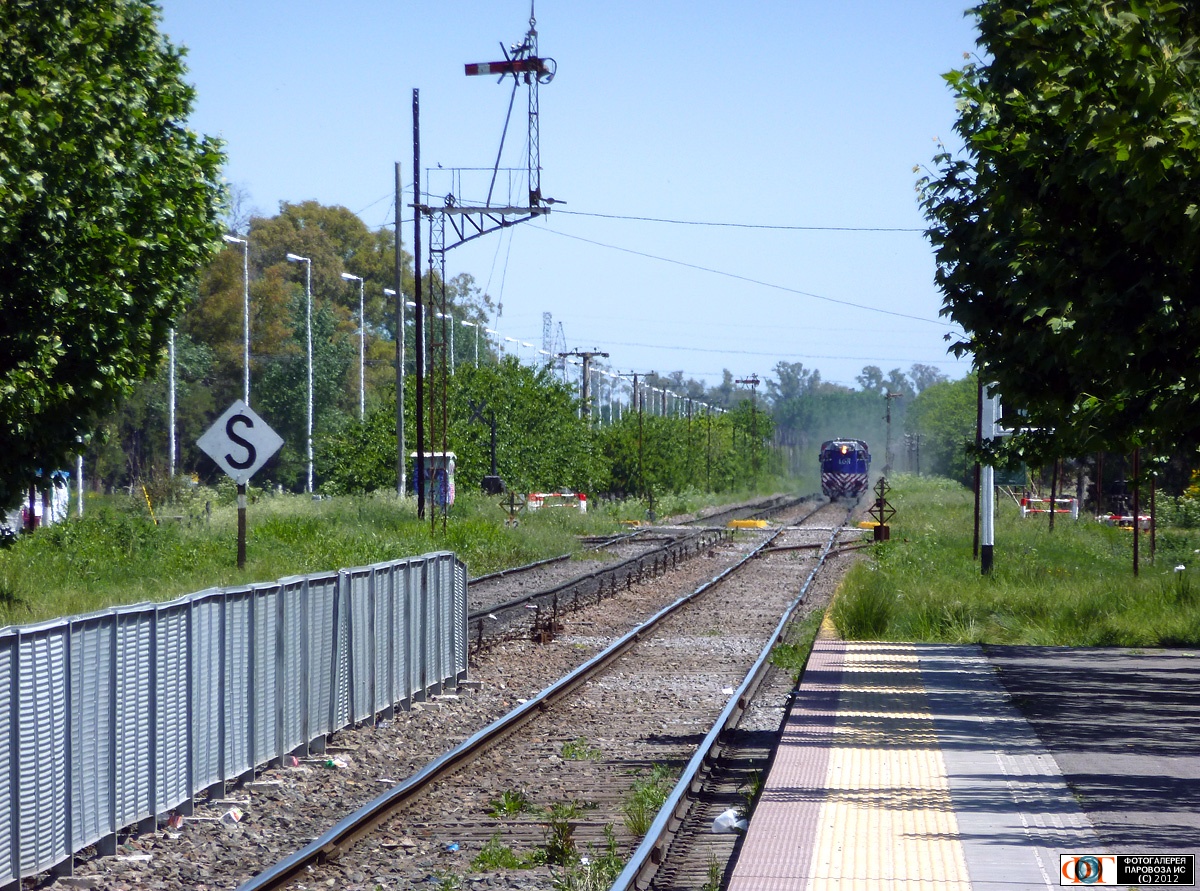 | Станция Максимо-Паз (вид в сторону Канюэляс) и поезд Канюэляс - Эсэйса, провинция Буэнос-Айрес, Аргентина Автор: Радеев Виталий | Фото сделано 28.X.2011, опубликовано 24.VIII.2012.