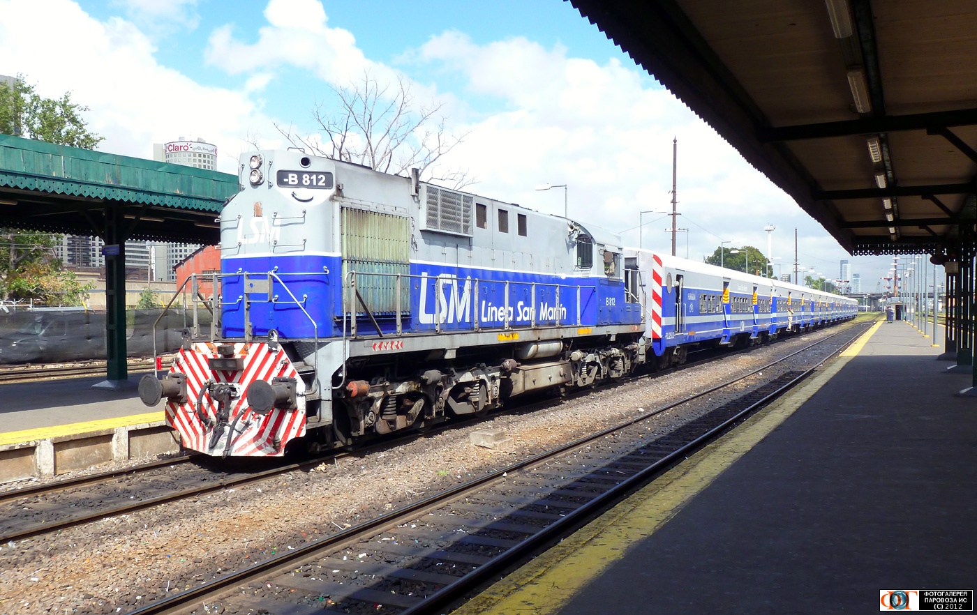 | Тепловоз ALCo RSD-16 №B812 прибывает с пригородным поездом к платформе вокзала Ретиро, Буэнос-Айрес, Аргентина Автор: Радеев Виталий | Фото сделано 14.XII.2011, опубликовано 27.VIII.2012.