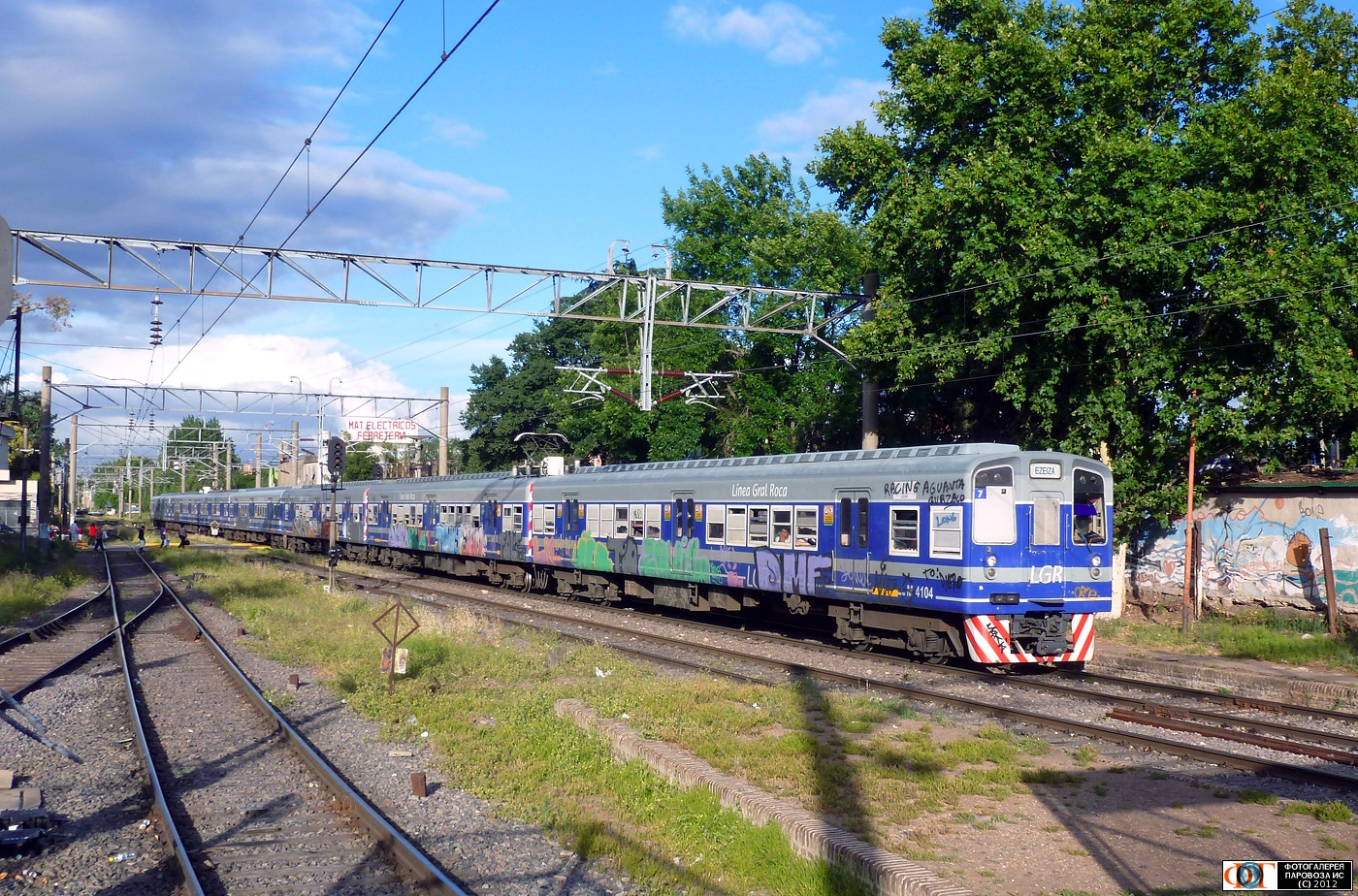 | Пригородный электропоезд М4104 заходит на станцию Эсейса, провинция Буэнос-Айрес, Аргентина Автор: Радеев Виталий | Фото сделано 15.XII.2011, опубликовано 28.VIII.2012.