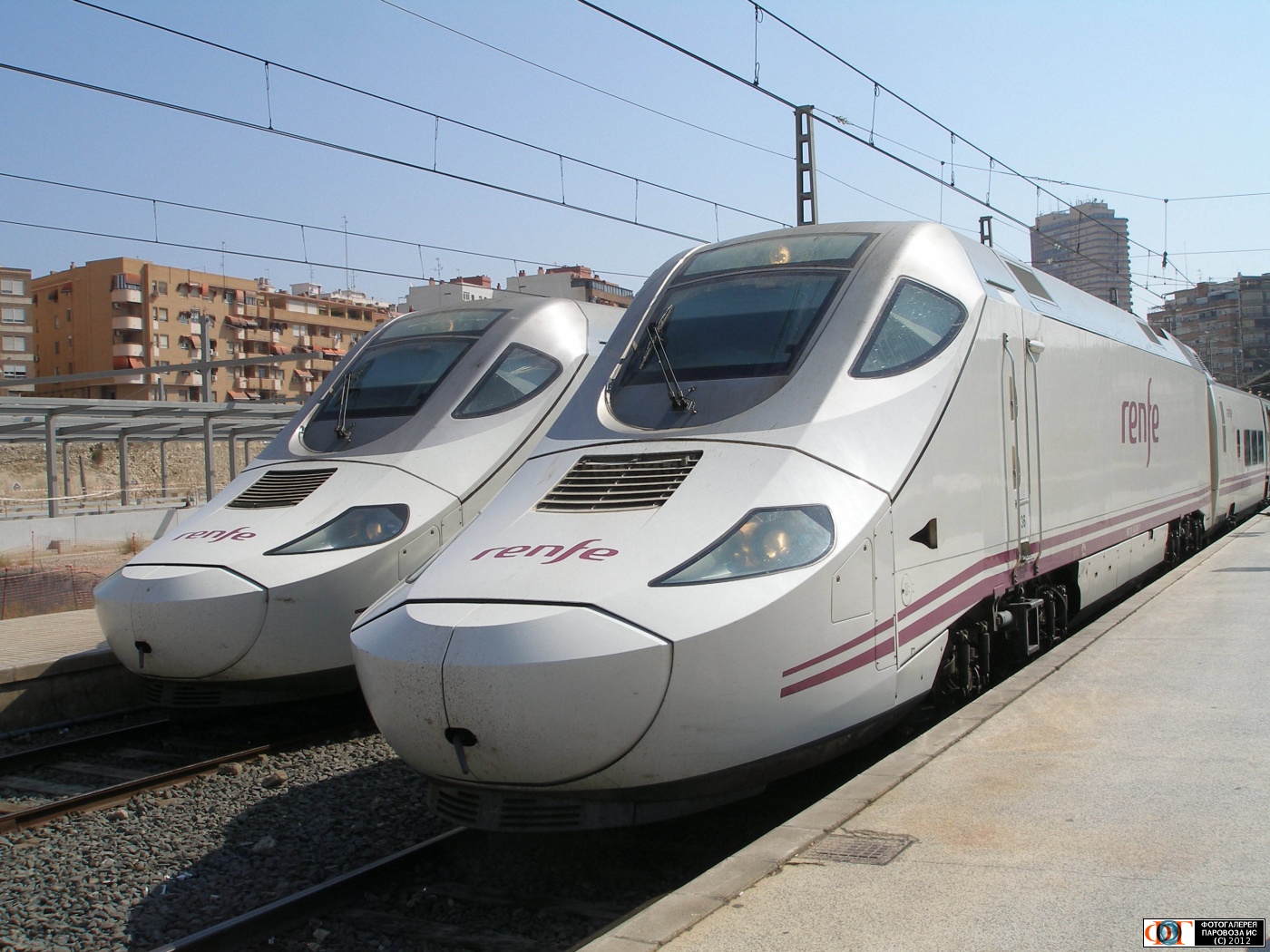 | Скоростные поезда Alvia компании Renfe на вокзале г. Аликанте, Испания Автор: Алексей Жучков | Фото сделано 11.IX.2012, опубликовано 24.IX.2012.