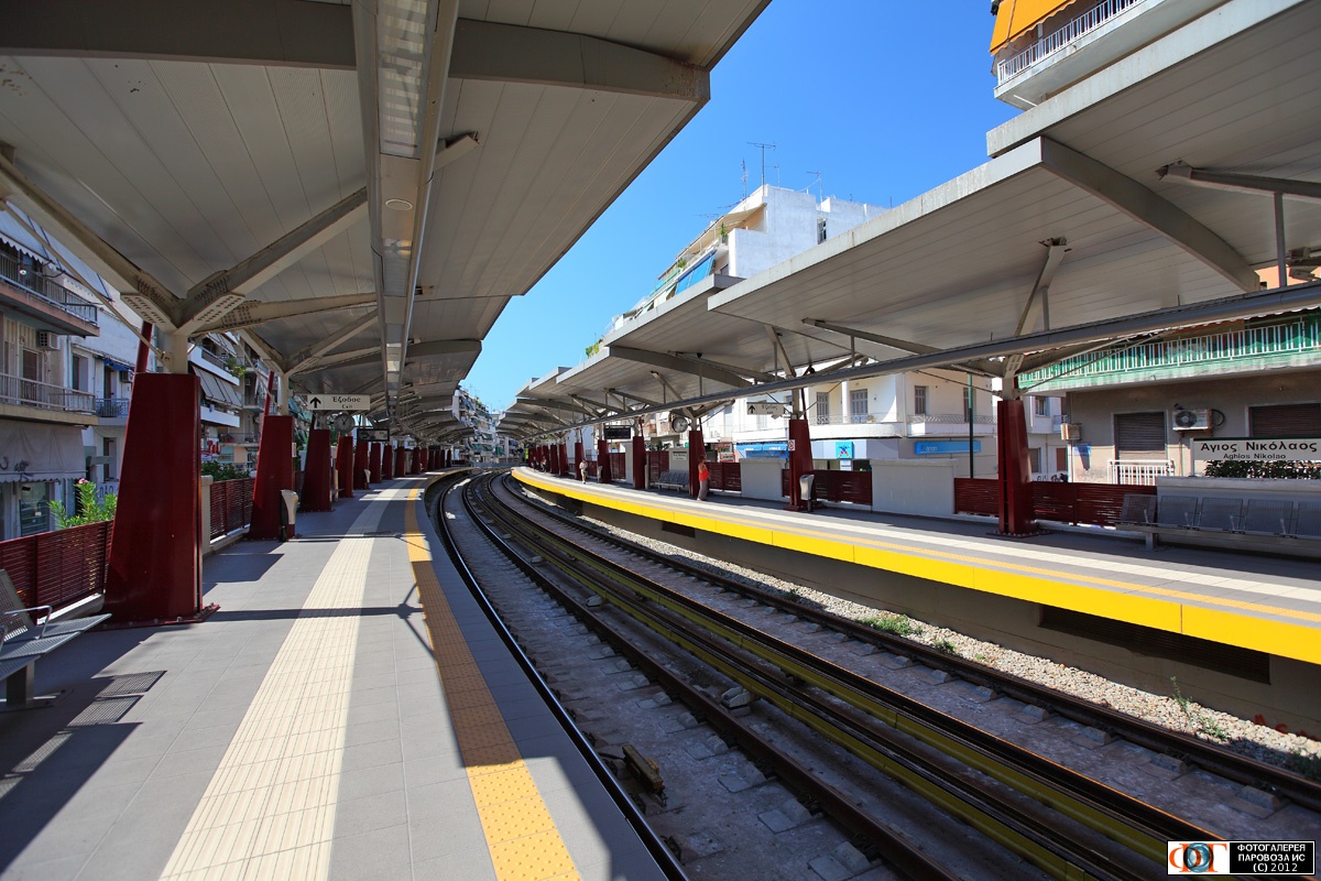 | Станция метро "Агиос-Николас". Линия 1 (зеленая), Афины, Греция Автор: Mikhail Krivyy † | Фото сделано 17.VIII.2012, опубликовано 30.X.2012.