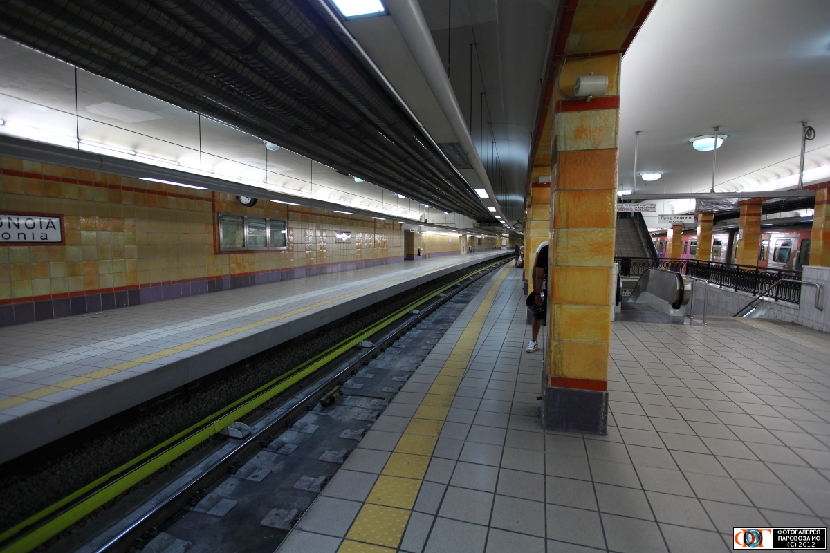 | Станция метро "Омония". Линия 1 (зеленая), Афины, Греция Автор: Mikhail Krivyy † | Фото сделано 16.VIII.2012, опубликовано 30.X.2012.