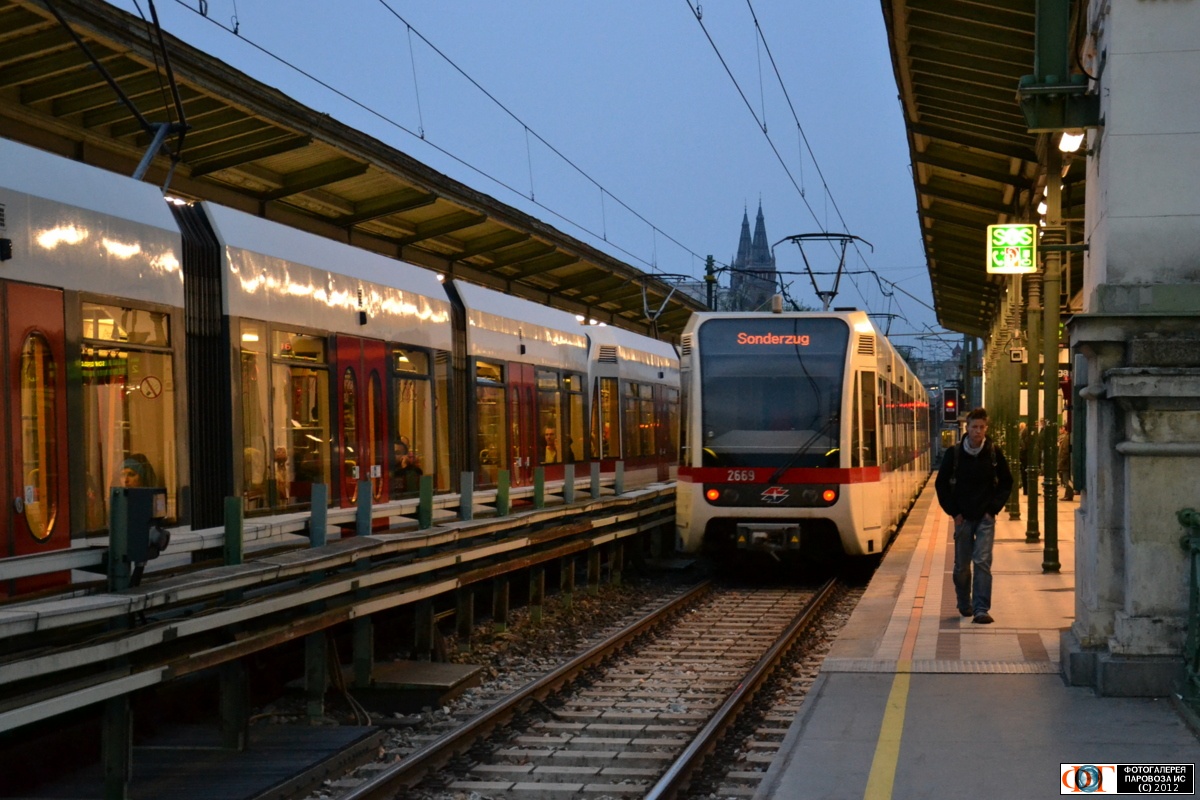 | Поезда метро трамвайного типа линии U6 на ст."Альзер-штрассе", Вена, Австрия Автор: Алекс | Фото сделано 14.IV.2012, опубликовано 19.XI.2012.