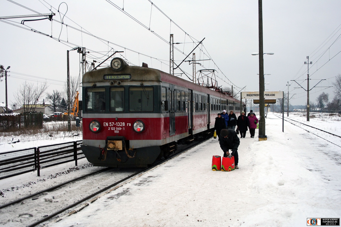 | Электропоезд EN57-1328 на ст. Мендзыжец-Подляски, Польша Автор: Адмирал | Фото сделано 15.XII.2012, опубликовано 31.XII.2012.