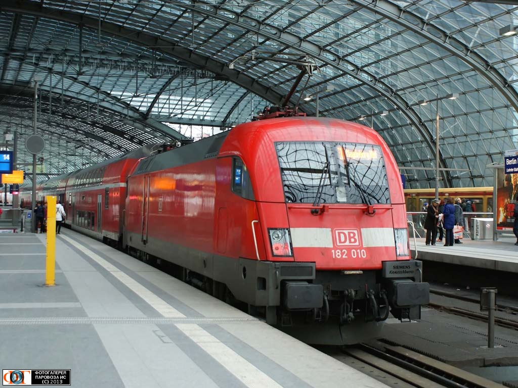 | Электровоз 182.010 с пассажирским поездом регионального сообщения на станции Берлин-Главный (Berlin Hauptbahnhof), Германия/Берлин Автор: Илья У | Фото сделано 1.II.2013, опубликовано 13.II.2013.