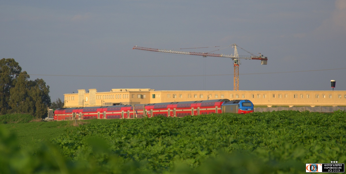 | Солнечным зимним днем. Тепловоз Euro 4000-1409 с поездом "Бомбардье", техническая станция Зихрон-Яаков, Израиль Автор: Алекс | Фото сделано 2.I.2013, опубликовано 16.II.2013.
