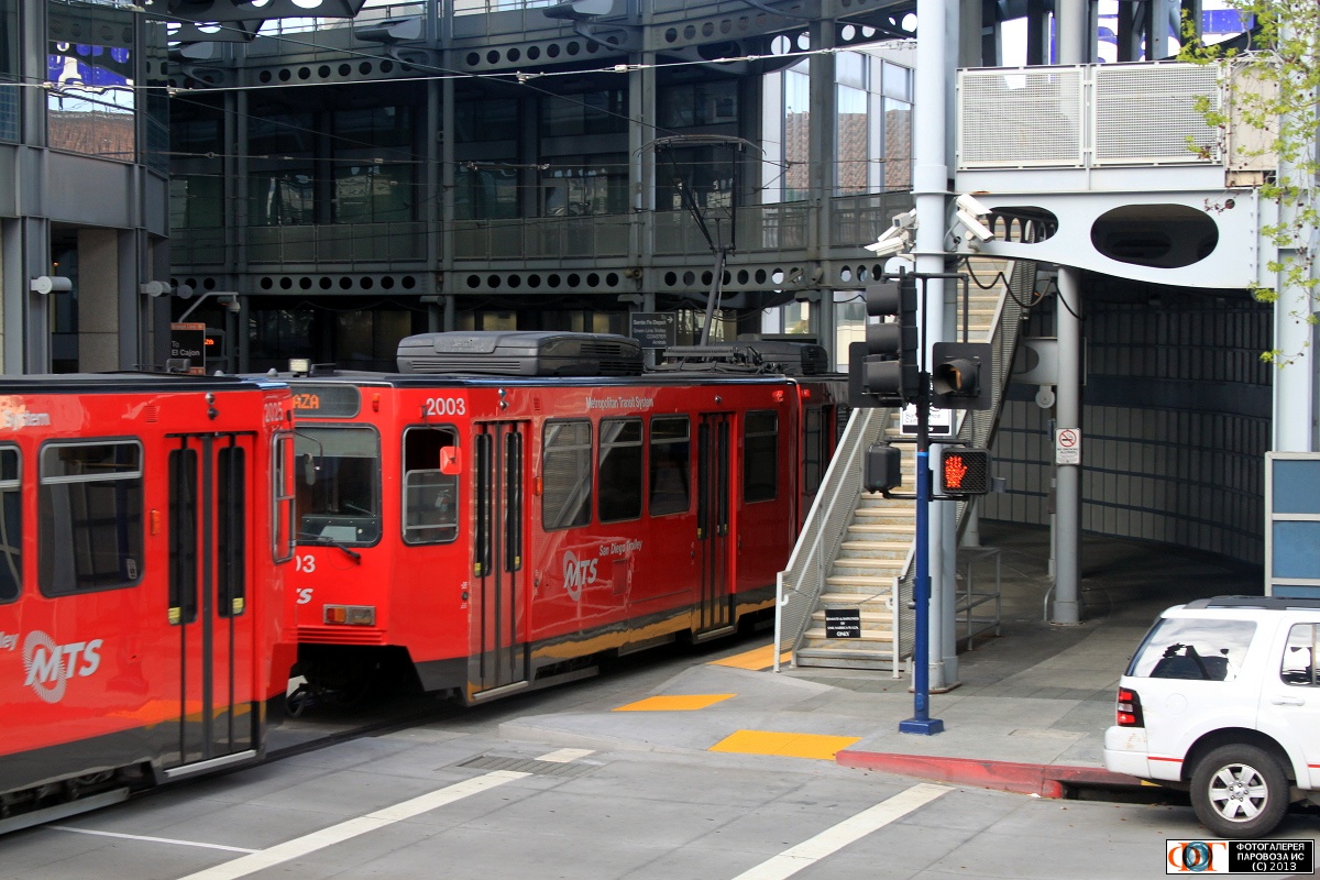 | Трамвай Синей линии входит на ст. "Площадь Америки", Сан-Диего, США/Калифорния Автор: Зиновьев Д. | Фото сделано 9.IV.2013, опубликовано 11.IV.2013.