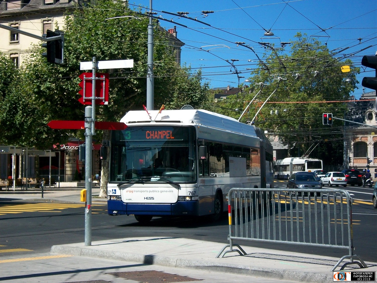 | Троллейбус Hess/Vossloh-Kiepe BGT-N2C поворачивает с улицы Шантепуле на улицу Кутанс, Женева, Швейцария Автор: Viggen | Фото сделано 8.VIII.2012, опубликовано 25.IV.2013.
