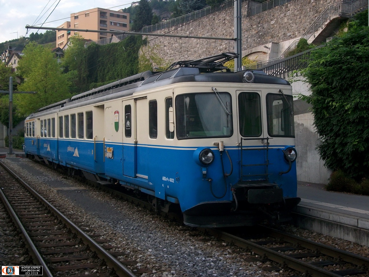 | Узкоколейная электромотриса ABDe 8/8-4002 на станции Монтрё, Швейцария Автор: Viggen | Фото сделано 22.VIII.2012, опубликовано 2.V.2013.