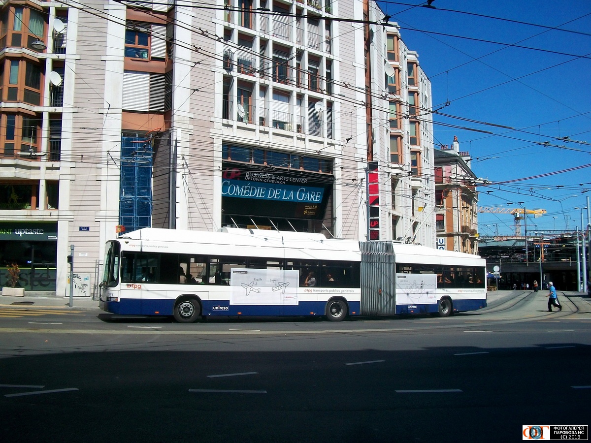 | Троллейбус Hess/Vossloh-Kiepe BGT-N2C поворачивает с улицы Пепиньер на улицу Сервет, Женева, Швейцария Автор: Viggen | Фото сделано 8.VIII.2012, опубликовано 28.IX.2013.