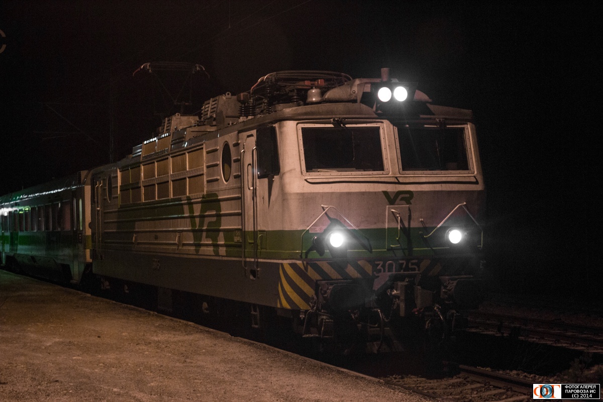 | Электровоз SR1-3075 с поездом IC Хельсинки- Йоэнсуу на станции Кесялахти (Kesälahti), Северная Карелия, Финляндия Автор: Бурундук | Фото сделано 3.I.2014, опубликовано 7.I.2014.