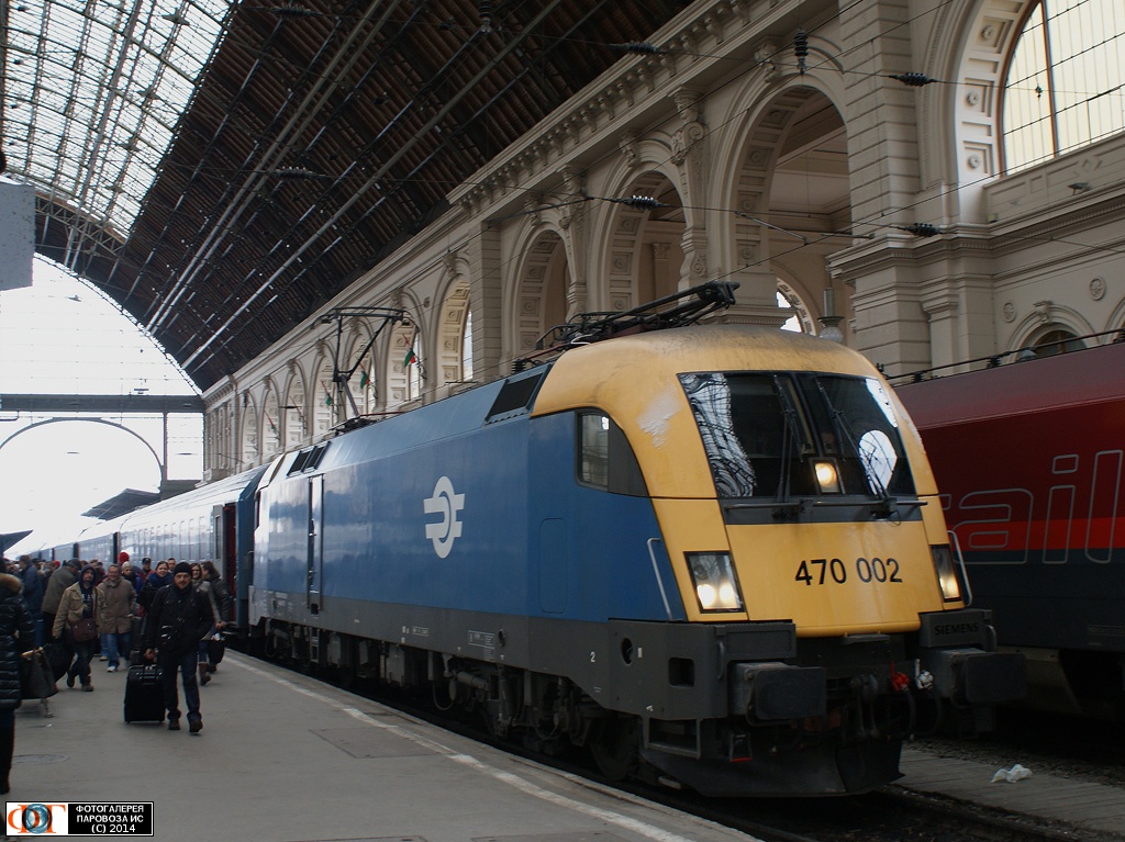 | Электровоз 470-002 с пассажирским поездом на станции Будапешт-Восточный, Будапешт, Венгрия Автор: Илья У | Фото сделано 1.II.2014, опубликовано 17.III.2014.