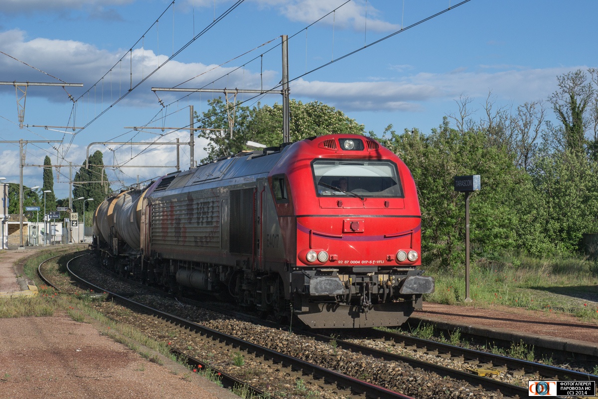 | Тепловоз EURO4000-017 с грузовым поездом следует по станции Тараскон-Сюр-Рон (Tarascon-Sur-Rhône), Франция Автор: Бурундук | Фото сделано 27.IV.2014, опубликовано 17.V.2014.
