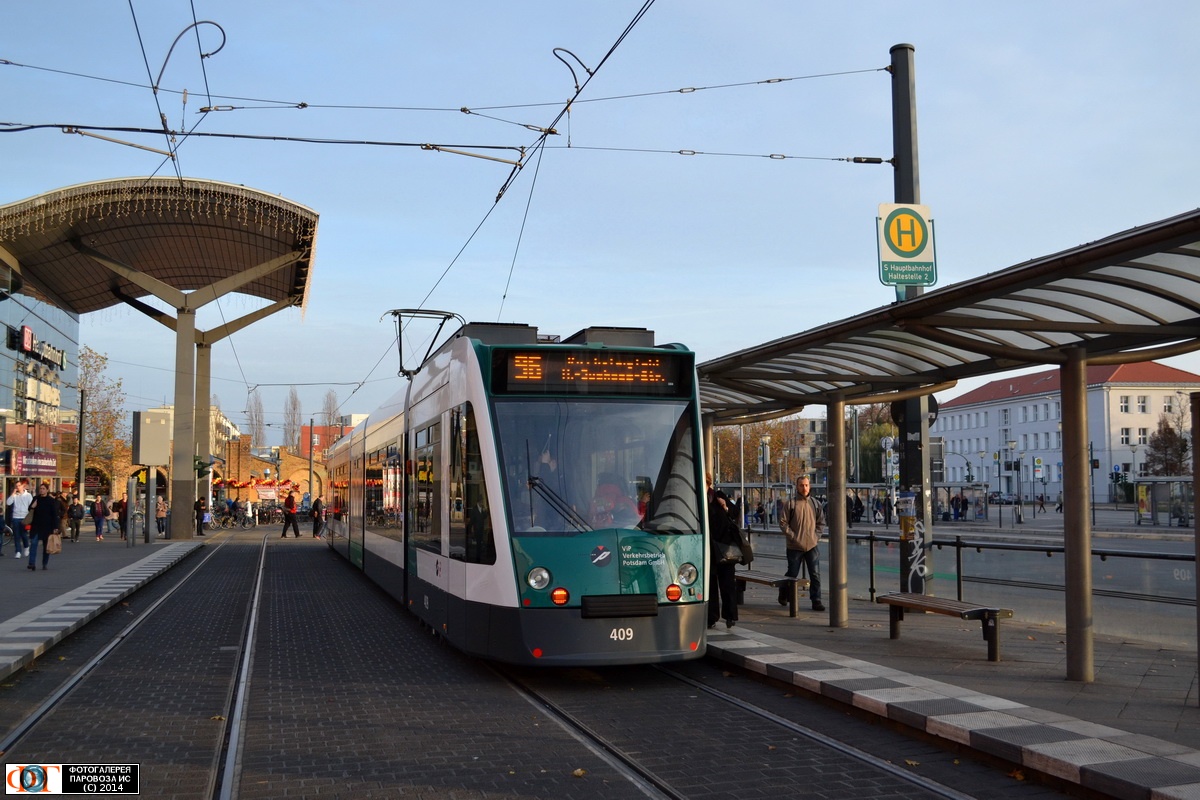 | Трамвай Siemens Combino у главного вокзала, Потсдам, Германия/Бранденбург Автор: Viggen | Фото сделано 22.XI.2014, опубликовано 15.XII.2014.