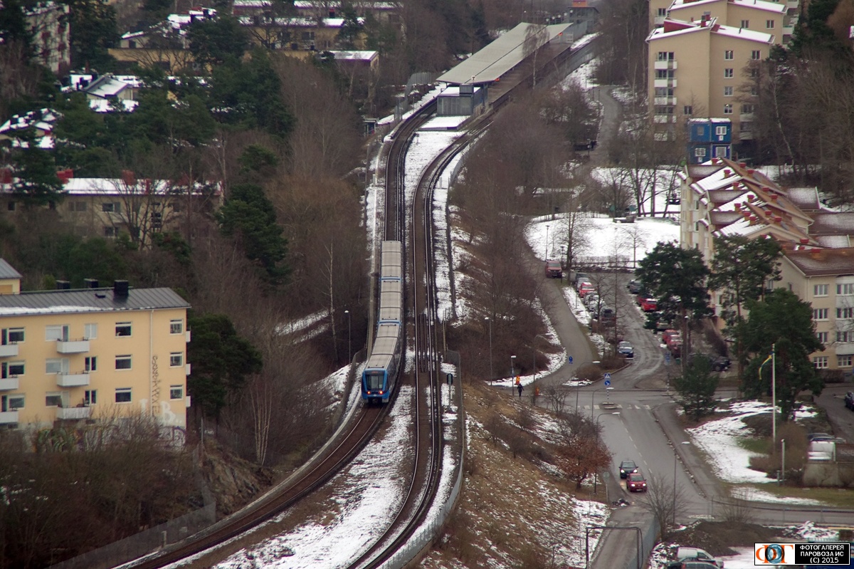 | Перегон "Шермарбринк" — "Хаммарбюхёйден" Стокгольмского метрополитена (Skärmarbrink - Hammarbyhöjden), Швеция Автор: tallart | Фото сделано 23.II.2015, опубликовано 26.II.2015.