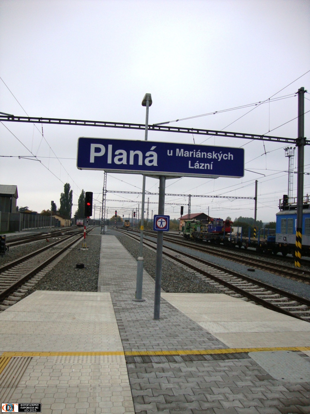 | Табличка станции Плана-у-Марианских-Лазней (Plana u Marianskych Lazni), Чехия Автор: Самофалов Олег | Фото сделано 5.X.2010, опубликовано 5.III.2015.