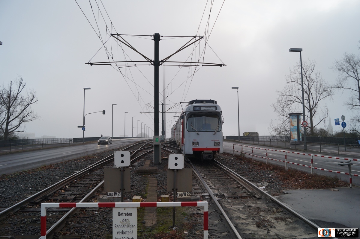| Duewag GT8SU в составе скоростного трамвая маршрута №75 на мосту через Рейн. Дюссельдорф, Германия/Северный Рейн-Вестфалия Автор: ВЧДЗР-5 | Фото сделано 17.I.2015, опубликовано 9.III.2015.
