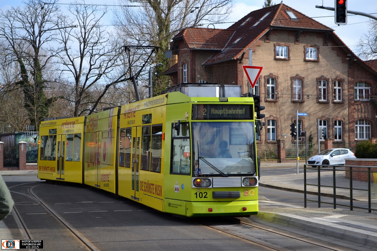 | Трамвай Düwag MGT6D на остановке "Николаиплац" (Nicolaiplatz), Бранденбург-на-Хафеле, Германия/Бранденбург Автор: Viggen | Фото сделано 28.II.2015, опубликовано 4.IV.2015.