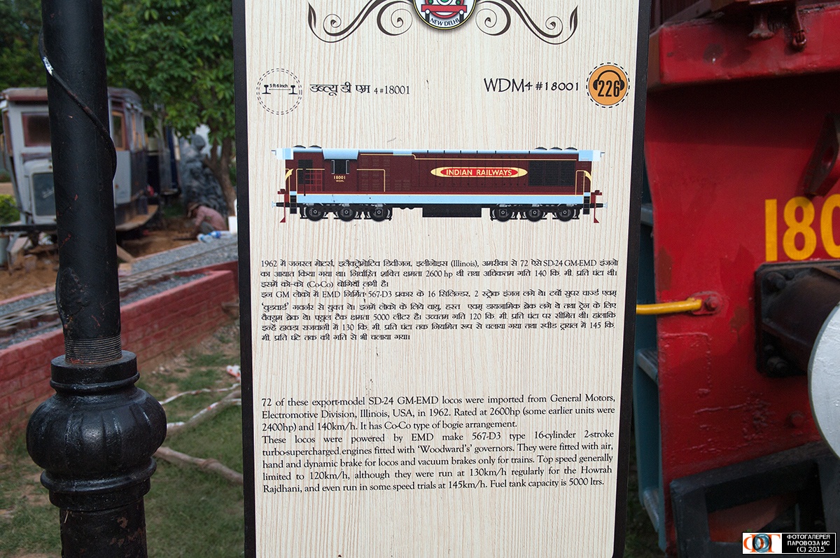 | Информационная табличка к тепловозу WDM/4-18001, Национальный железнодорожный музей (National Rail Museum), Дели (New Delhi), Индия Автор: Щукин Д. | Фото сделано 16.IV.2015, опубликовано 7.IX.2015.