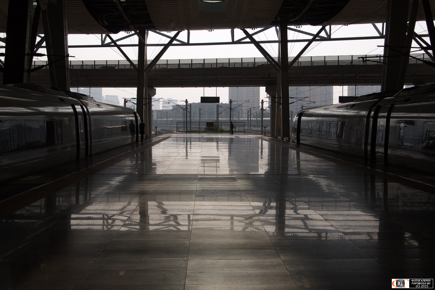| Платформа южного вокзала Пекина, поезда CRH380BG-5593 и CRH380BL-3536, Китай Автор: Владислав Никитенко | Фото сделано 15.X.2015, опубликовано 19.X.2015.