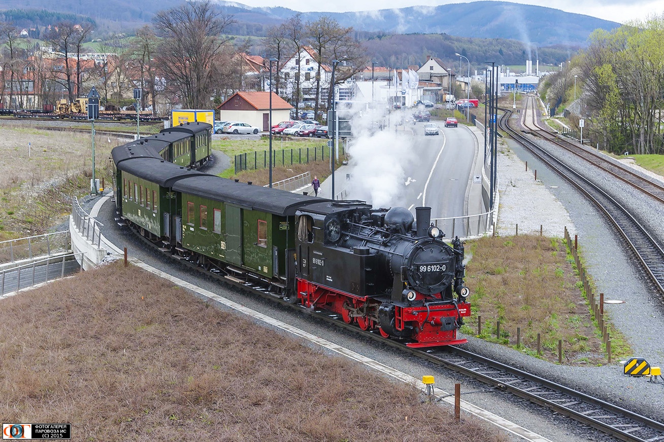 | Паровоз BR99.6102-0 с ретро-поездом прибывает на станцию Вернигероде (Wernigerode), Германия/Саксония-Ангальт Автор: Dmittri | Фото сделано 14.IV.2008, опубликовано 9.III.2016.