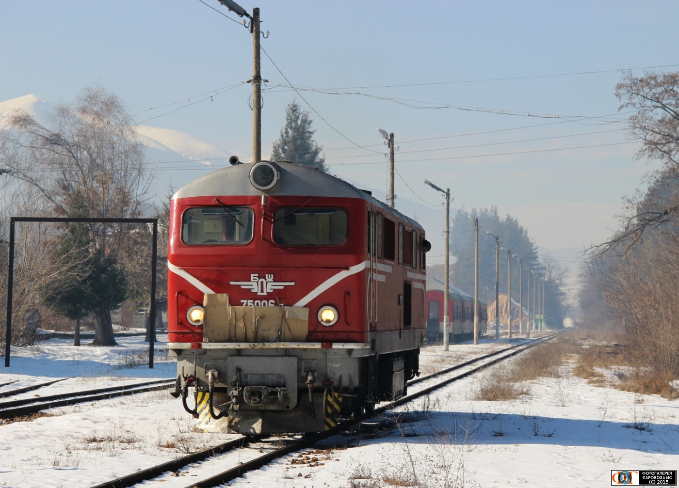 | Тепловоз 75006-7 производит маневровую работу на станции Добриниште узкоколейной ж.д. линии Септември - Добриниште, Болгария Автор: Геннадий теплоходов | Фото сделано 28.I.2016, опубликовано 6.IV.2016.