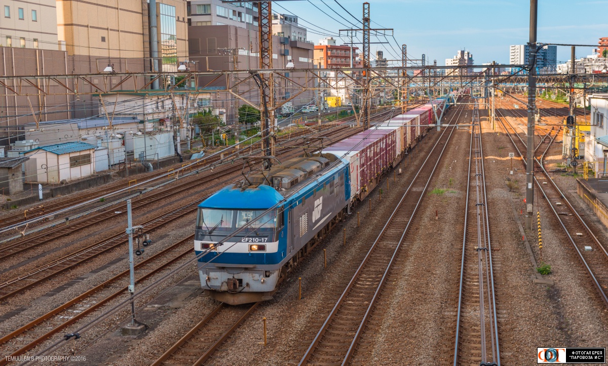 | Электровоз EF210-17 с контейнерным поездом проходит станцию Цуруми, Йокогама, Япония Автор: Тэмулэн.Б | Фото сделано 4.VI.2016, опубликовано 15.VI.2016.