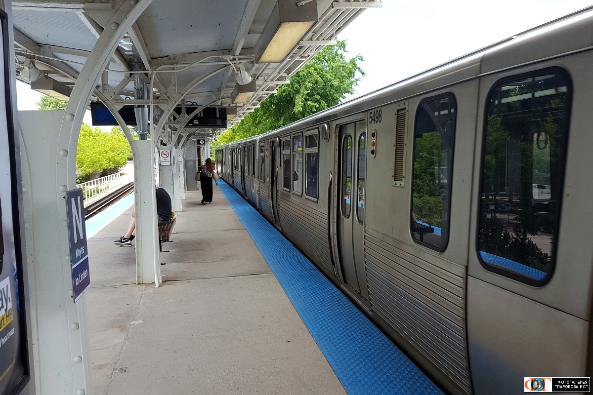 | Поезд на ст. метро "Нойс" Сиреневой линии, Эванстон, США/Иллинойс Автор: Зиновьев Д. | Фото сделано 26.VI.2016, опубликовано 29.VI.2016.