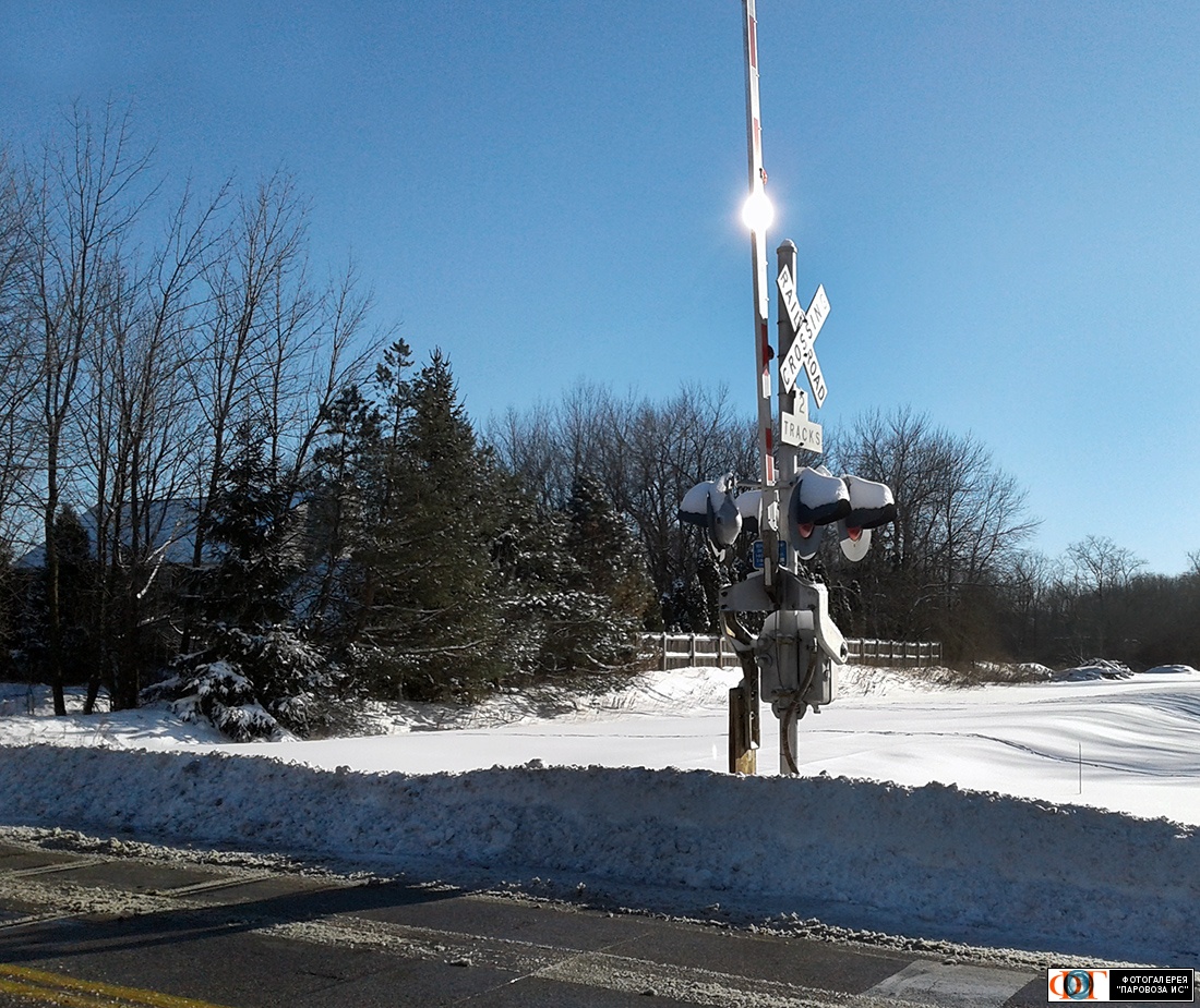 | Переезд на улице Меквуон-роуд. Грузовая линия Юнион-Пасифик. Меквуон, США/Висконсин Автор: Роман | Фото сделано 18.XII.2016, опубликовано 8.V.2017.