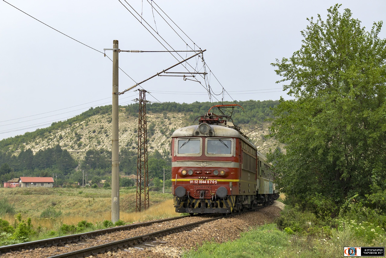 | Электровоз 44 076 с поездом Варна - Пловдив, перегон Синдел - Юнак, область Варна, Болгария Автор: Бекиров И. | Фото сделано 27.VII.2017, опубликовано 9.IX.2017.