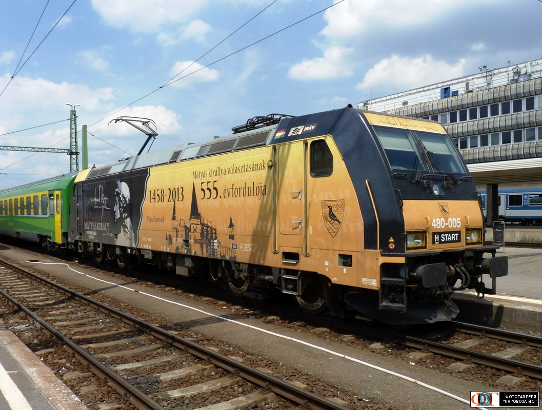 | Электровоз 480-005 с пассажирским поездом на станции Будапешт-Дели, Венгрия Автор: ВЧДЗР-5 | Фото сделано 23.V.2017, опубликовано 11.X.2017.