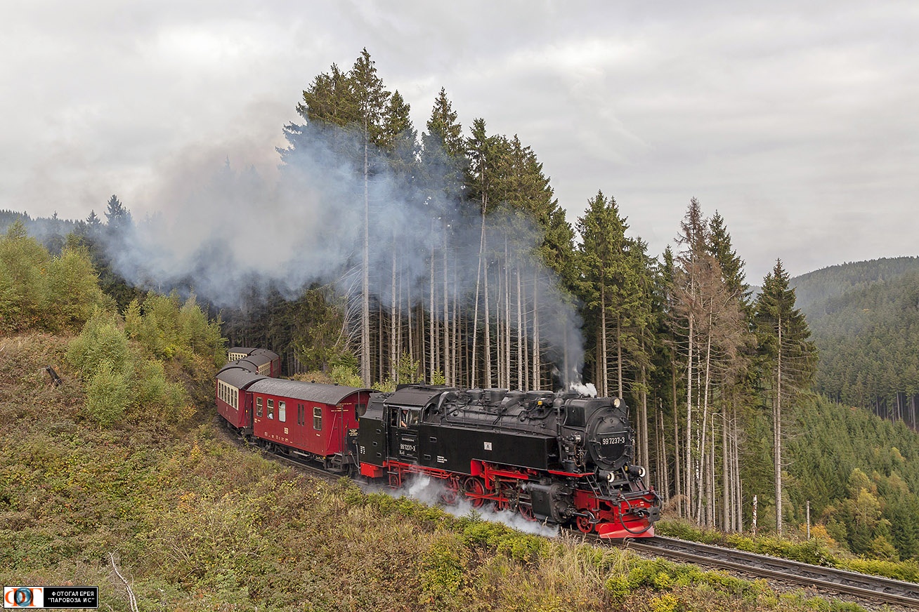 | Паровоз BR99.7237-3 с поездом на перегоне Дрэнгеталь - Драй-Аннен-Хоне (Drängetal - Drei-Annen-Hohne), Германия/Саксония-Ангальт Автор: Dmittri | Фото сделано 3.X.2017, опубликовано 13.X.2017.