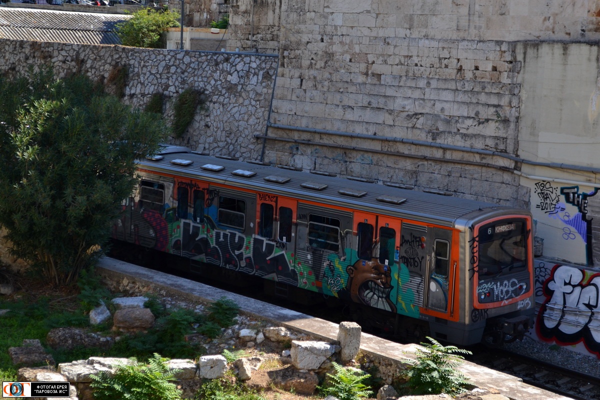 | Метропоезд одиннадцатой серии на перегоне "Тисио" - "Монастираки", 1-я линия Афинского метрополитена, Греция Автор: Viggen | Фото сделано 13.X.2017, опубликовано 6.XI.2017.