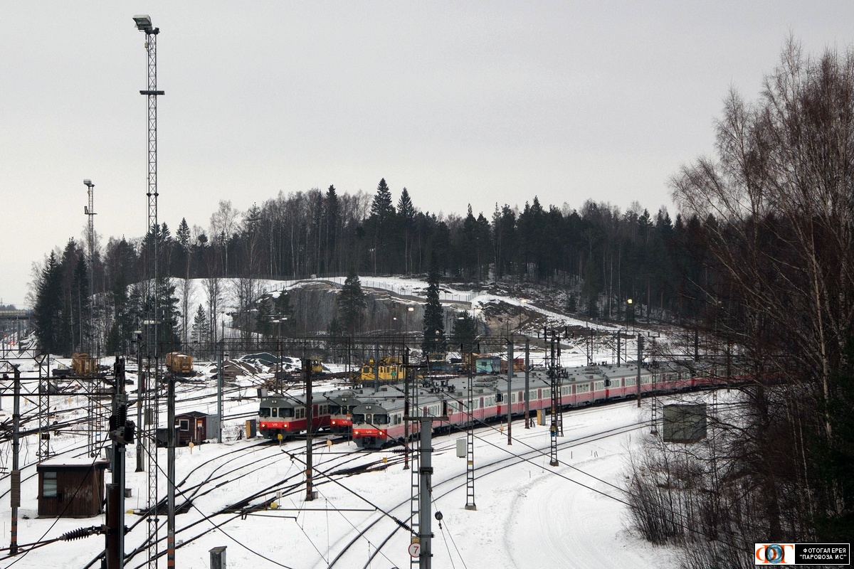 | Отстой электропоездов Sm2, станция Риихимяки (Riihimäki), Финляндия Автор: Григорий Егоров † | Фото сделано 24.III.2018, опубликовано 30.III.2018.