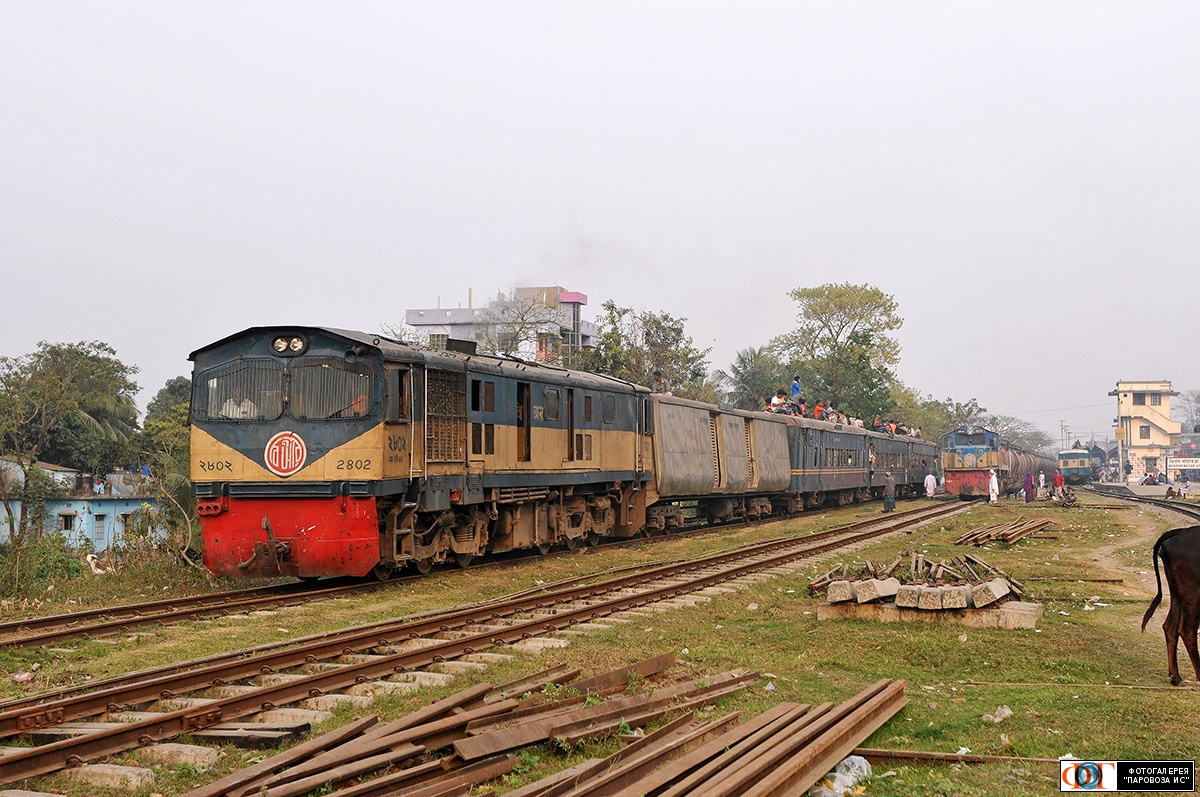 | Tепловоз 2802 (1000мм) отправляется со ст. Баираб-Базар (Bairab Bazar) с пассажирским поездом (39up Isha Khan Express), Бангладеш Автор: Martin Haefliger | Фото сделано 20.II.2018, опубликовано 23.IV.2018.