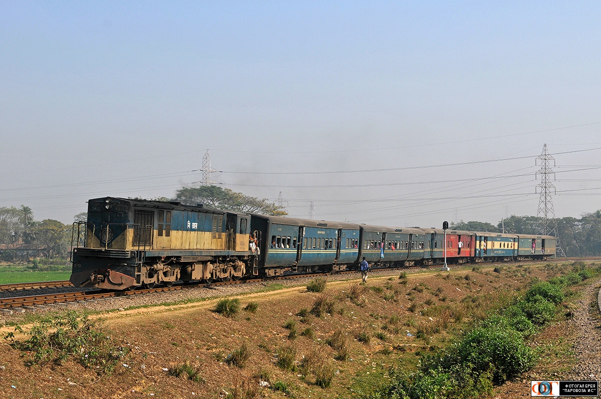 | Тепловоз 2412 с пассажирским поездом (10dn Surma Mail) на перегоне Пубаил – Тонги (Pubail – Tongi Jn), Бангладеш Автор: Martin Haefliger | Фото сделано 12.II.2018, опубликовано 1.V.2018.
