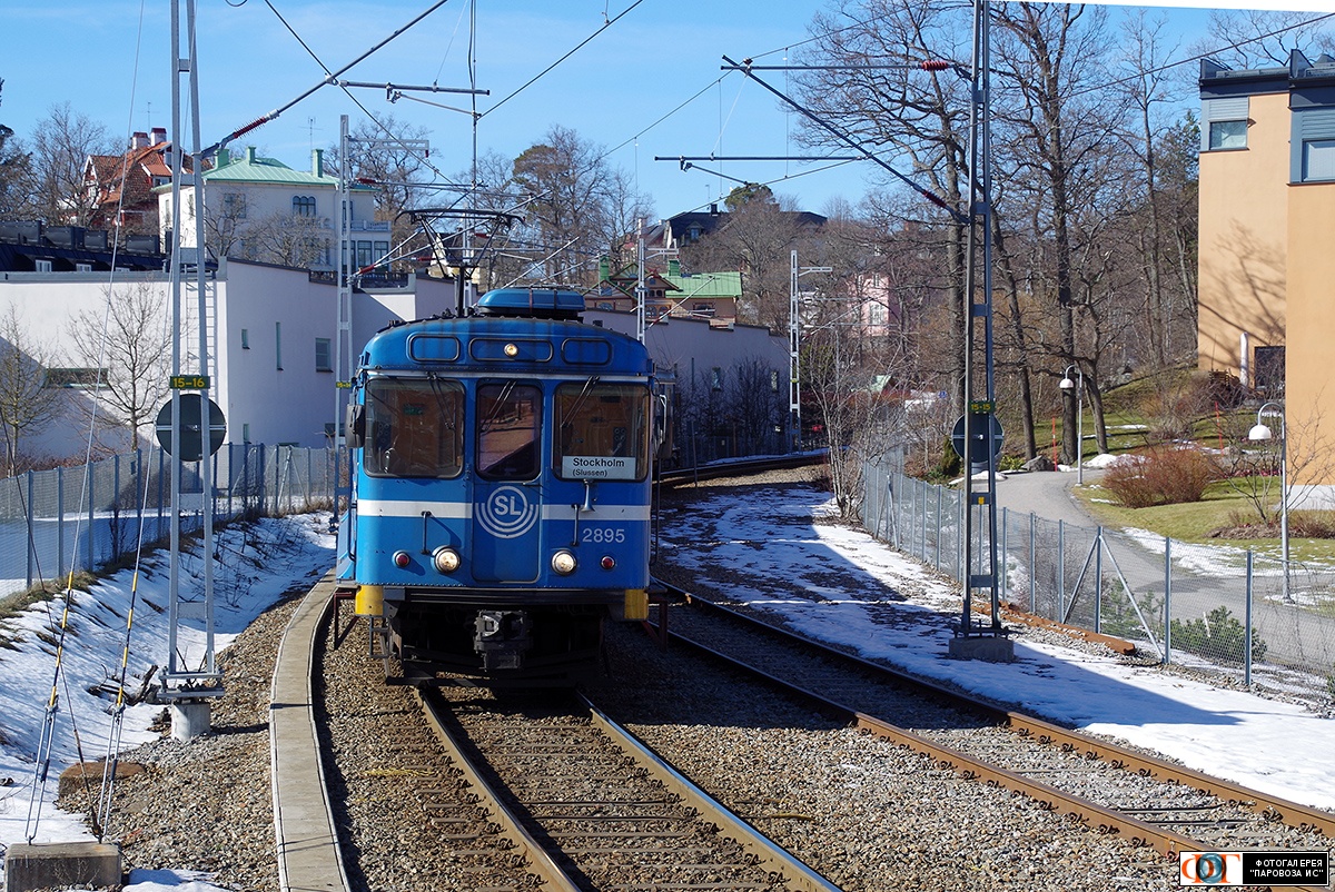 | Электропоезд местной железной дороги (Saltsjöbanan) с головным вагоном №2895, линия L25, станция Сальтсьёбаден (Saltsjöbaden station), г. Стокгольм, Швеция Автор: tallart | Фото сделано 25.III.2018, опубликовано 12.V.2018.