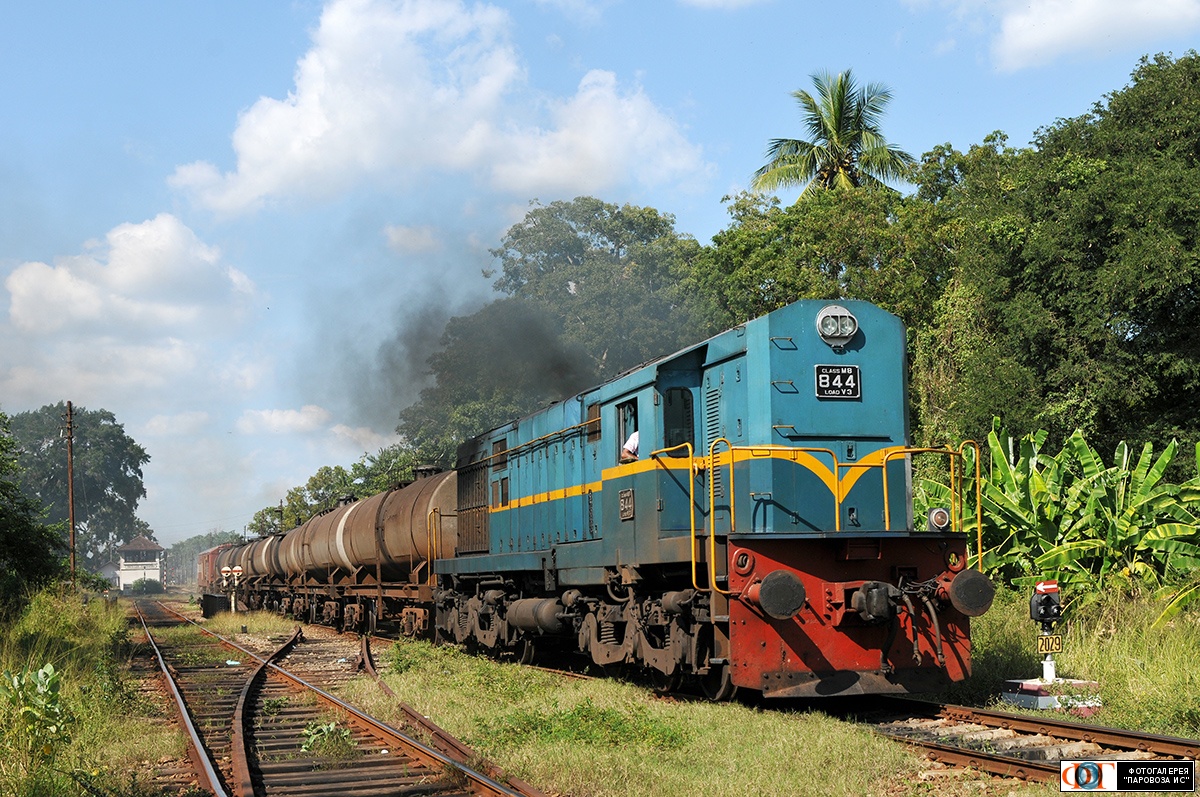 | Тепловоз M8-844 отправляется со ст. Анурадапура (Anuradapura) с грузовым составом, Шри-Ланка Автор: Martin Haefliger | Фото сделано 9.II.2018, опубликовано 17.XI.2018.
