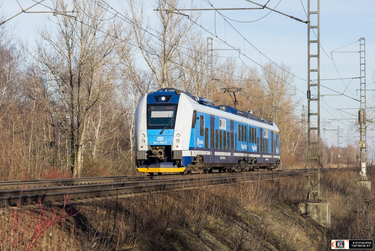 | Электропоезд 651.008-5, маршрут Os3056, на перегоне Богумин - Острава-Главный вокзал, Чехия Автор: ES499 | Фото сделано 19.I.2019, опубликовано 19.II.2019.