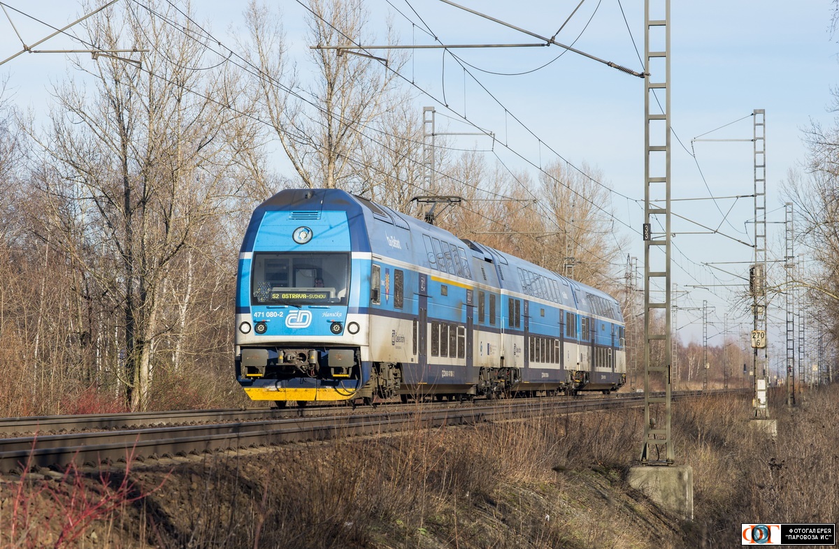 | Электропоезд 471.080-2 "Ганичка", следующий по маршруту Os2934, на перегоне Богумин - Острава-Главный вокзал, Чехия Автор: ES499 | Фото сделано 19.I.2019, опубликовано 5.III.2019.